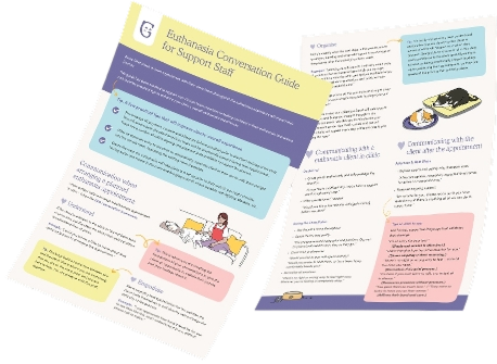 Our mission is to ensure every pet receives a peaceful and loving end of life experience. We hope that sharing information and our learnings from supporting 1000's of families to say farewell will support and empower clinic teams to create the best experience possible for both clients and staff.